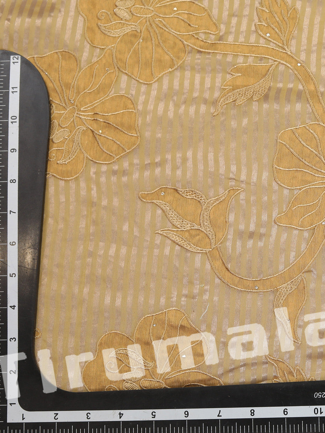 This mustard yellow Chanderi silk features charming thread embroidery, perfect for vibrant and sunny ethnic wear.