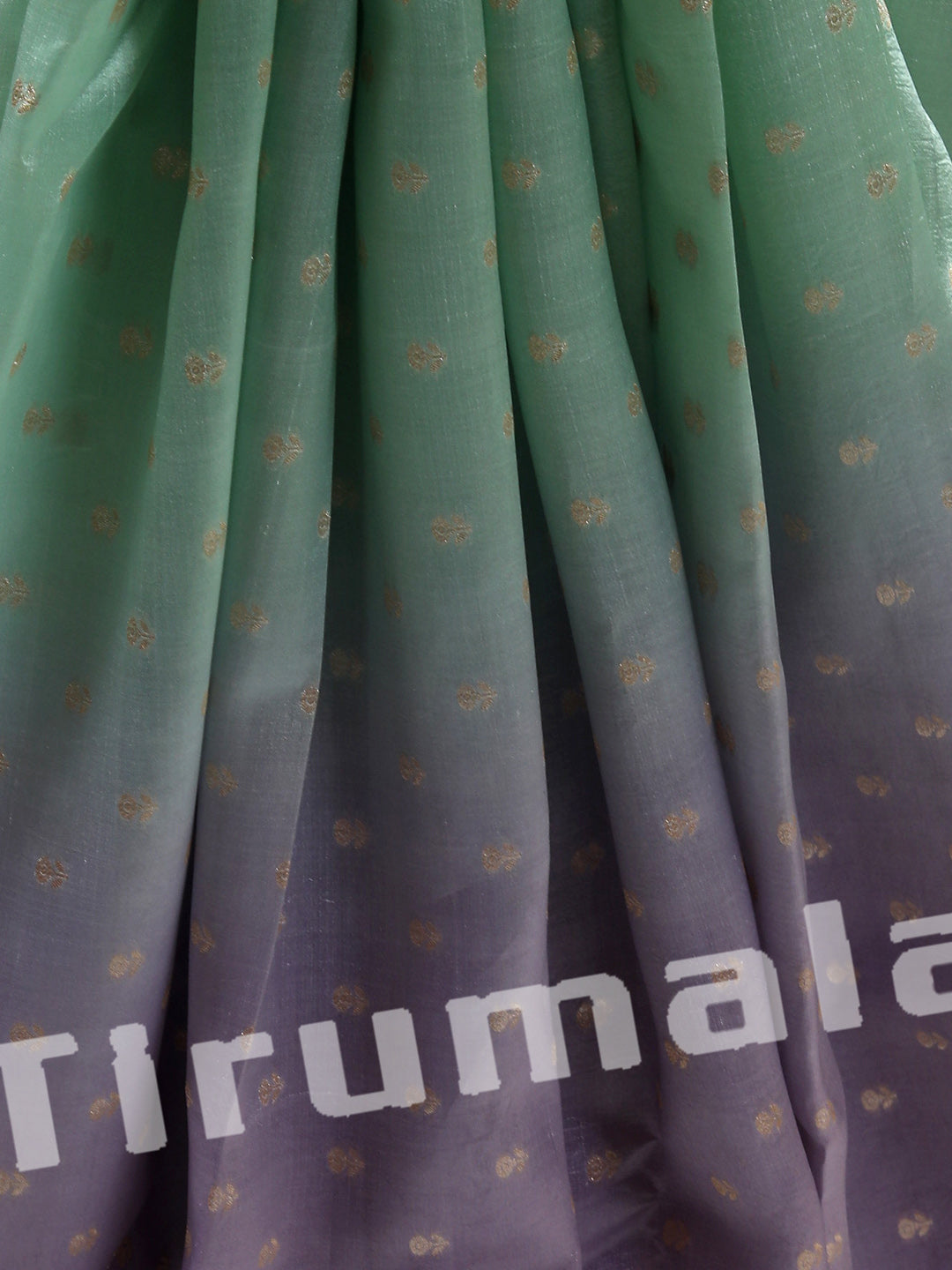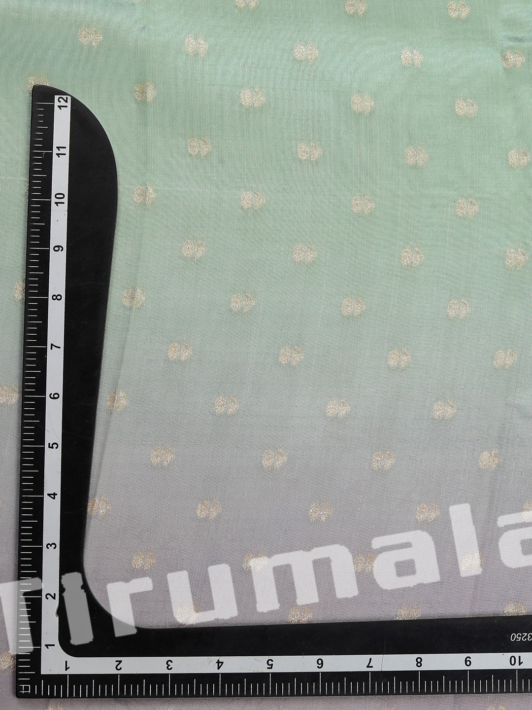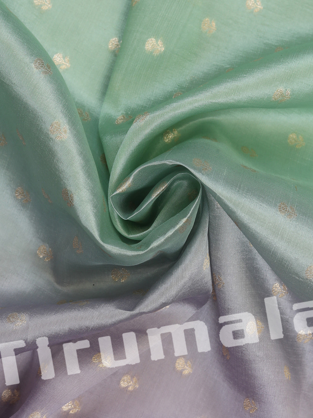 This dual-tone tanchoi silk combines refreshing blue and green hues with intricate butti embroidery, creating a vibrant yet elegant fabric. Its smooth silk texture and lustrous finish lend themselves to stylish festive or formal ethnic garments.