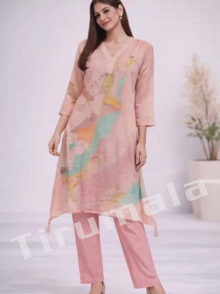 - This airy peach co-ord set in soft cotton is designed for effortless everyday elegance.