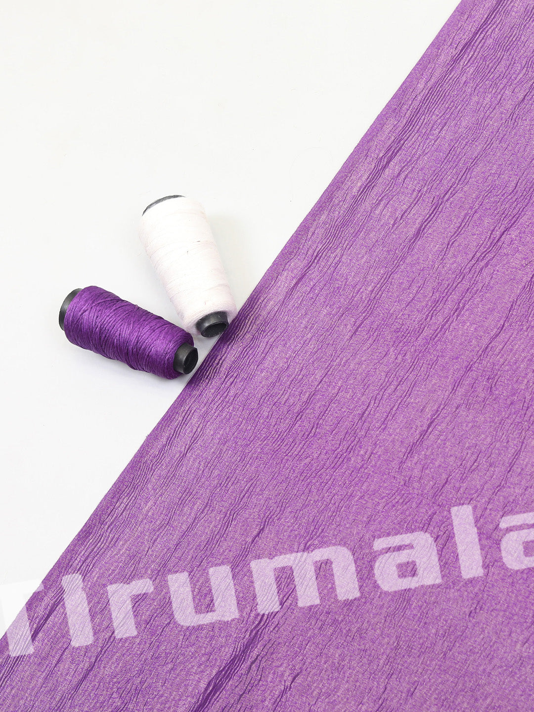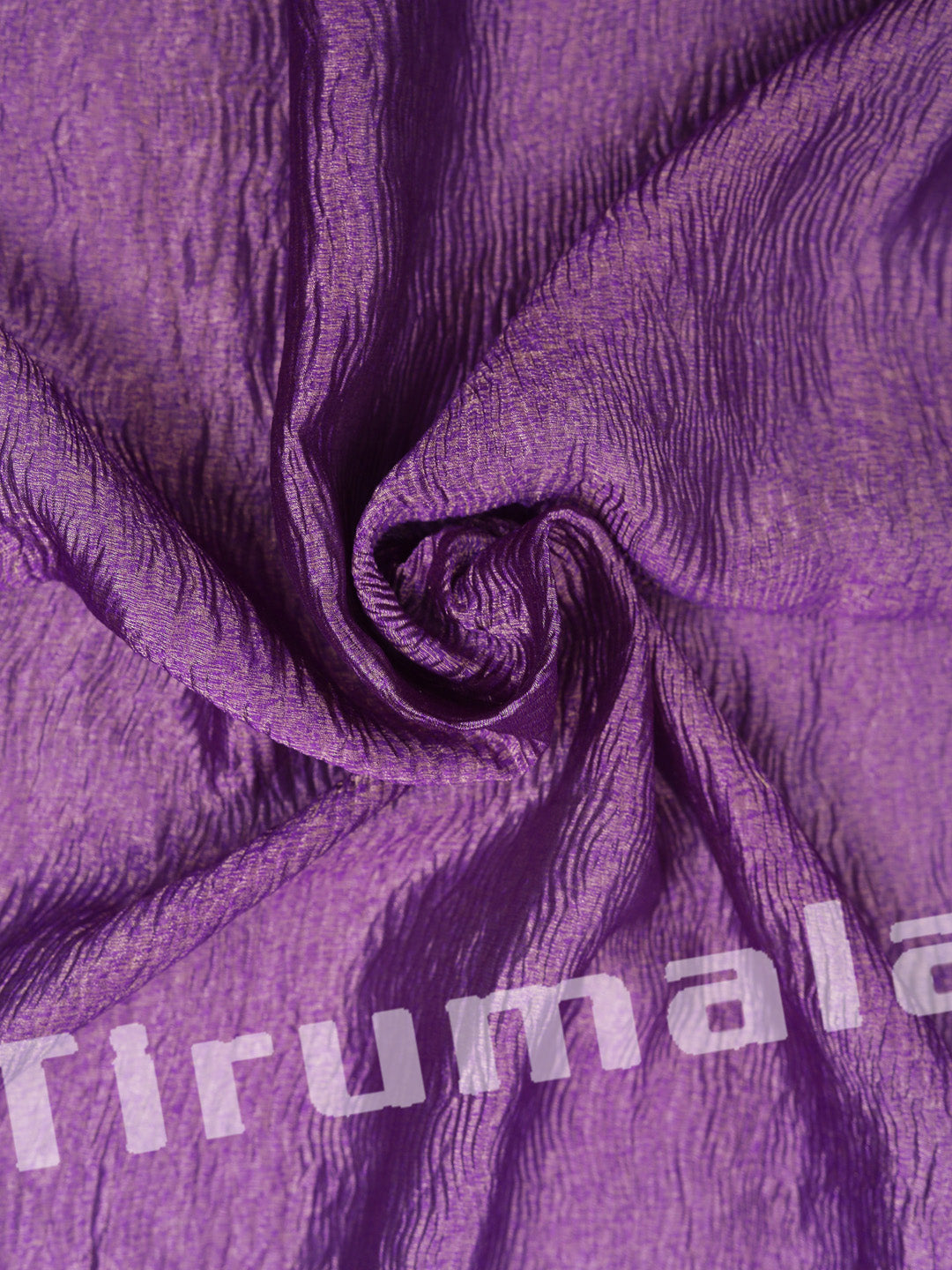 Elegant purple crush tissue silk fabric detailed with delicate butti embroidery, combining a soft crinkled texture with subtle embellishments. Ideal for sarees or suits, this fabric merges traditional artistry with a modern lightweight feel, perfect for festive or semi-formal wear.
